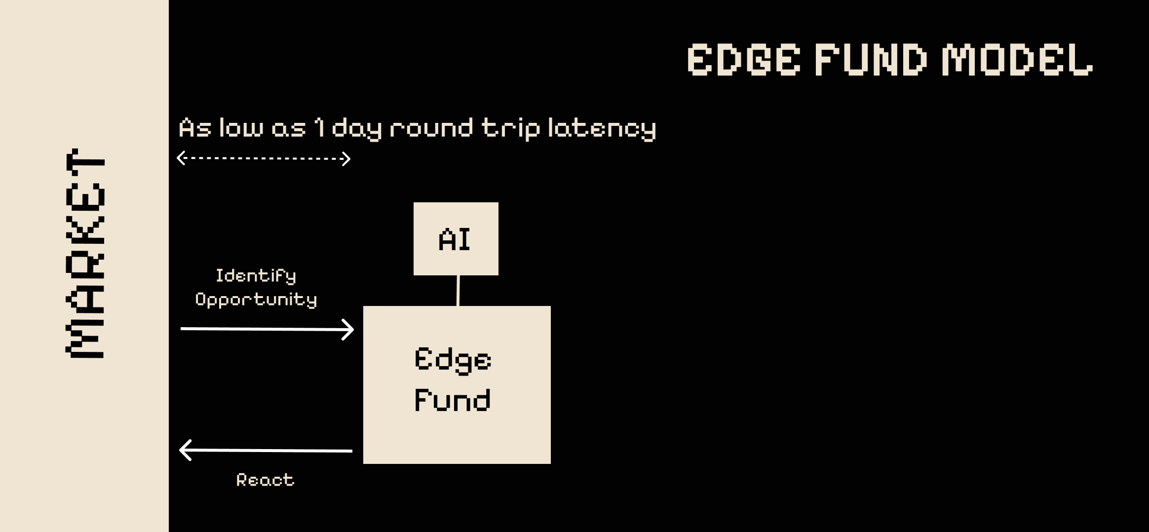Edge funds will have radically low roundtrip latency compared to VC funds. They’ll be like running your trading algorithms next door to the stock exchange. They’ll be able to identify an opportunity in the market and respond to it in hours or even minutes. The traditional “identify an opportunity and then fundraise” model will look comically slow by comparison.